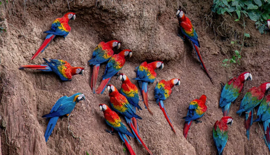 The Chuncho Clay Lick, also known as the Macaw Clay Lick, is far more than a spectacle of sound and color, it is one of the most breathtaking natural displays of beauty. It is located within the Tambopata National Reserve, approximately 1h45 minutes from the city of Puerto Maldonado.